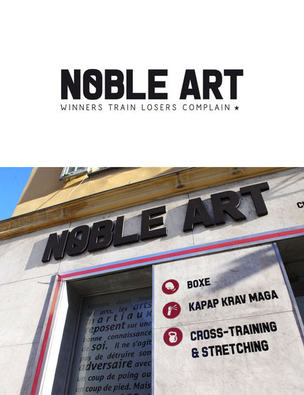 NOBLE ART # Logo to interior design for a boxing gym based at Nice. A small boxing gym (36 m2) near the port of Nice is accessible directly from the street and is designed primarily for private lessons. It was necessary to add a shower with a dressing space for clients to the existing premises.